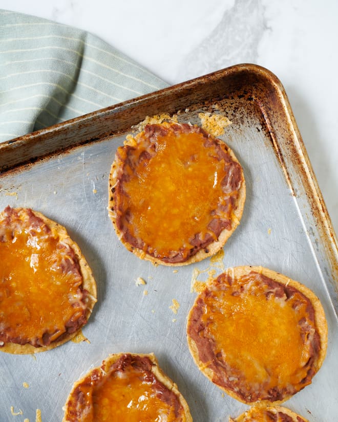 These Refried Bean Tostadas Are Creamy, Crispy, Cheesy Perfection