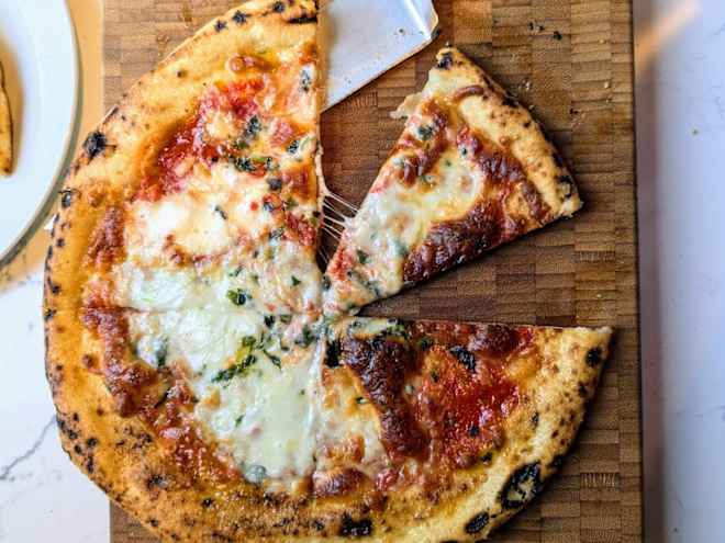 The crust is bubbled and charred with a great chew.